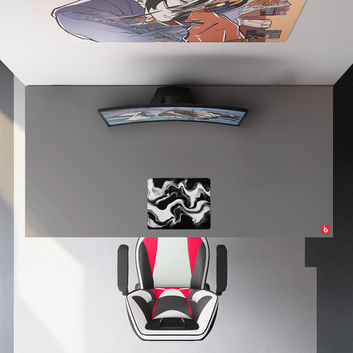 Embrace the fluid beauty of "Marble Flow". This captivating design features swirling black and white marble patterns that flow and melt in a mesmerizing, abstract form. Perfect for those who love modern art and minimalism, "Marble Flow" brings a dynamic, hypnotic energy to any workspace.